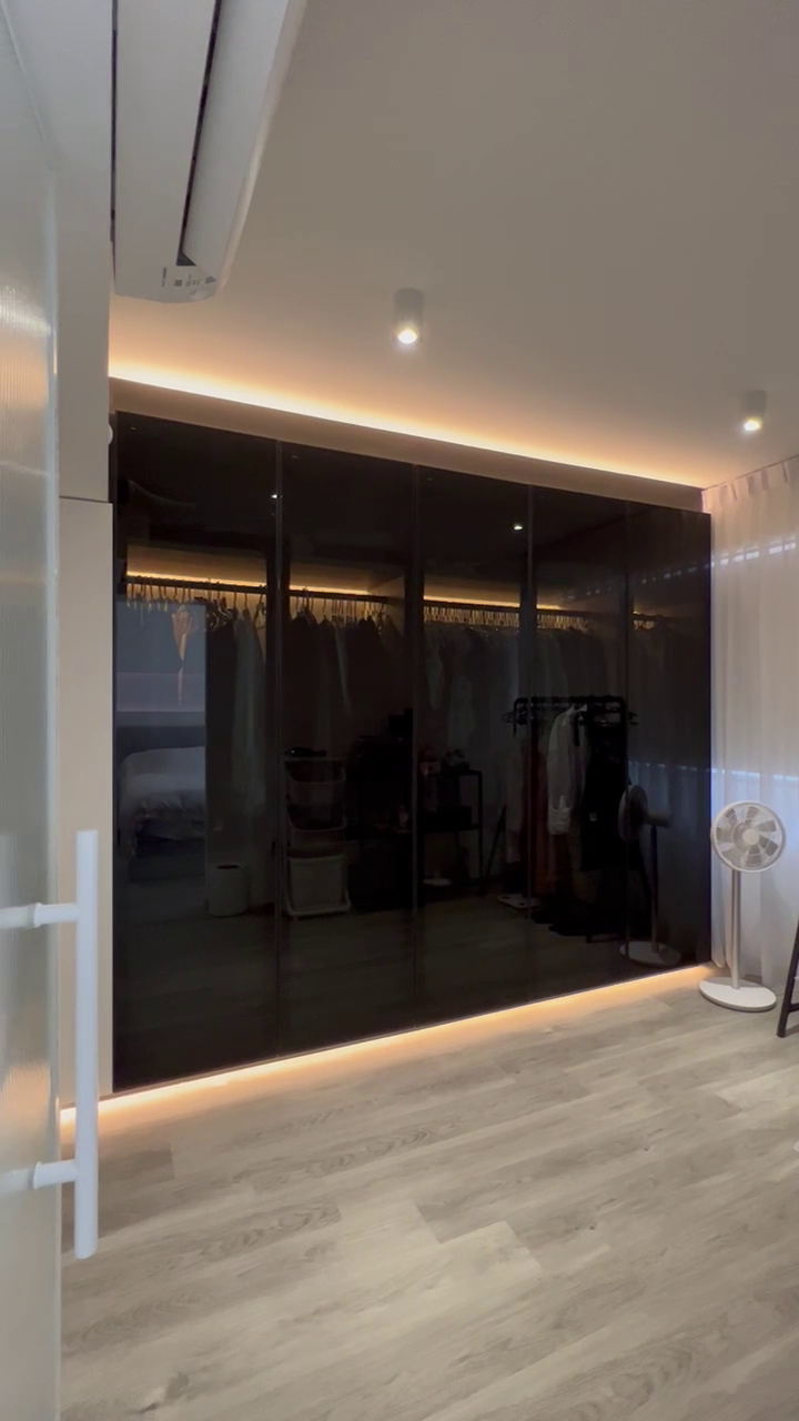 Partitioned wall coated over with special effects painting adds a layer of texture without taking too much attention away from the rest of the apartment. This allows careful placement of TV wirings and electronics sockets for client’s needs.